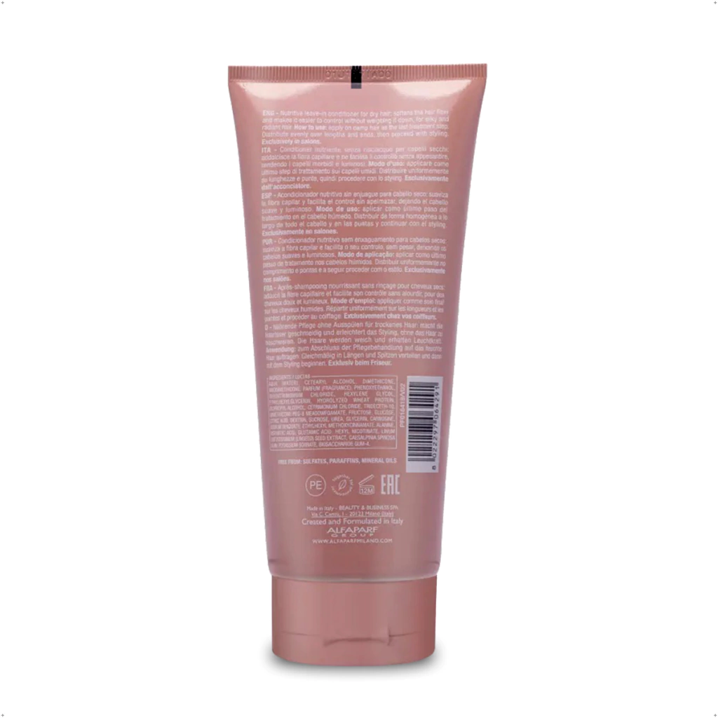 Acondicionador sin aclarado para cabello seco o seco. Alfaparf Semi Di Lino Moisture Nutritive Leave-in Conditioner nutre y aporta un toque suave al cabello. Perfecto para aquellas que quieren más brillo y vida para su cabello.