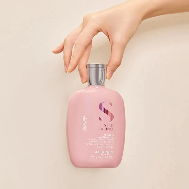 Alfaparf Semi Di Lino Moisture Nutritive Low Shampoo nutre, aporta un brillo duradero y protege de las agresiones diarias. Todo ello, con una limpieza delicada, con una espuma que no reseca.