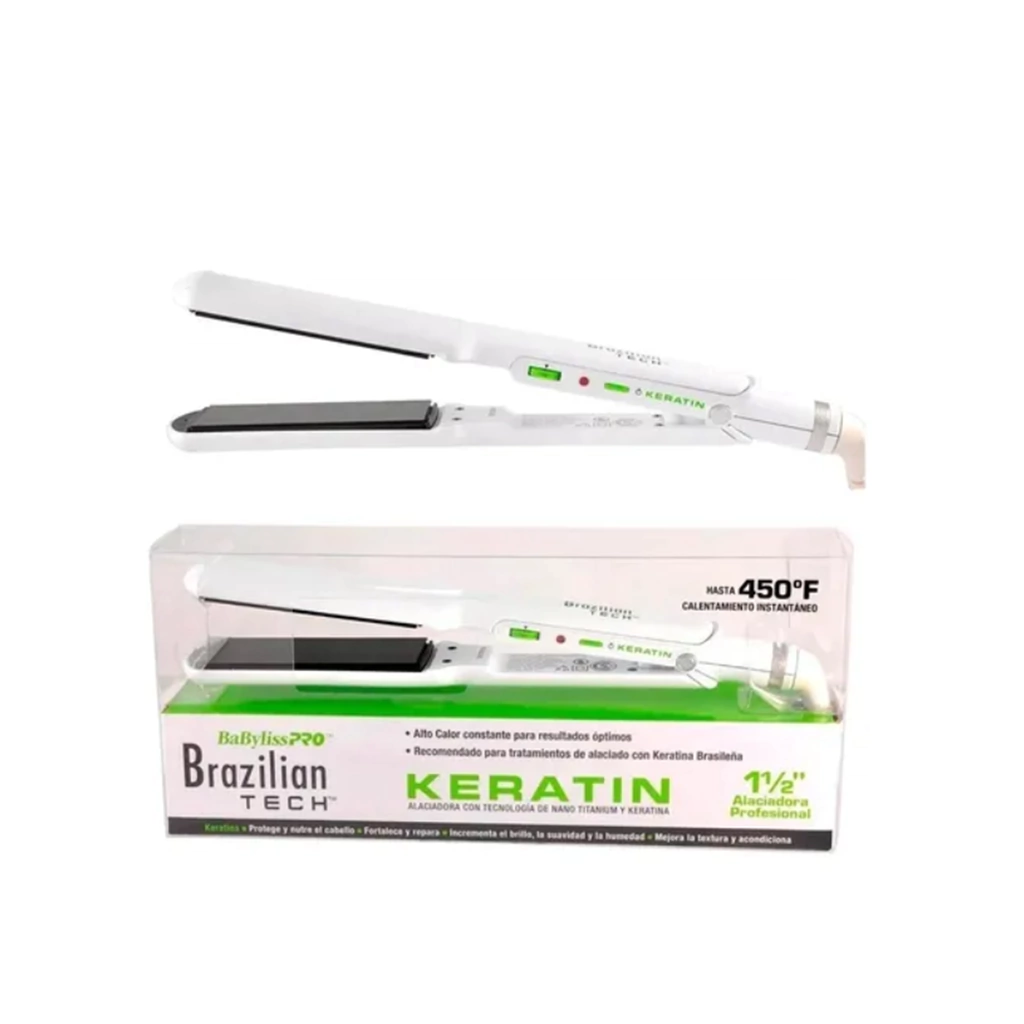 La Plancha Brazilian TECH Nano Titanium y Keratina 9559 Babyliss Pro contiene alto Calor constante para resultados óptimos, recomendado para tratamientos de alaciado con Keratina Brasileña Plancha Alaciadora con Tecnología de Nano Titanium y Keratina, una proteína que penetra profundamente en el cabello, para lograr alaciados con resultados superiores La Keratina protege, nutre, fortalece y repara el cabello. Intensifica el brillo y la suavidad mientras mejora la textura, y la elasticidad del cabello.