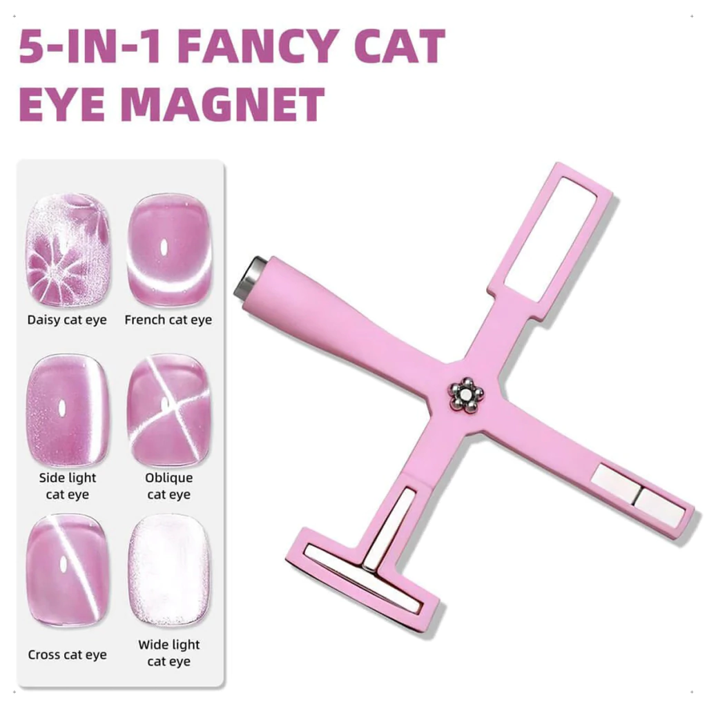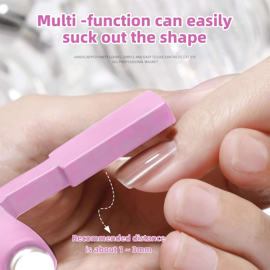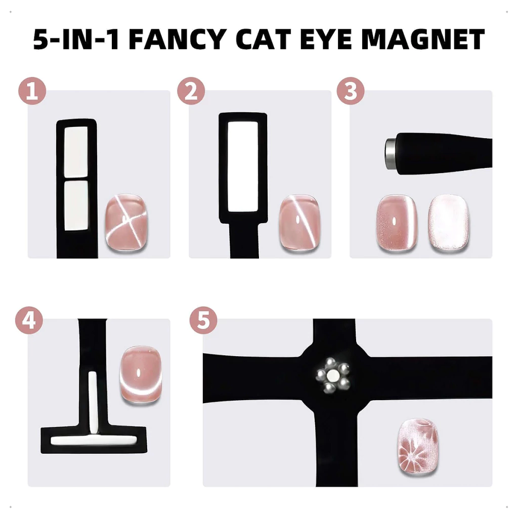 Ideal para realizar diseños decorativos, con productos que contienen pigmentos magnéticos que se activan al contacto con un imán que, al pasarlo de forma vertical o diagonal sobre la uña, provoca el toque deseado.