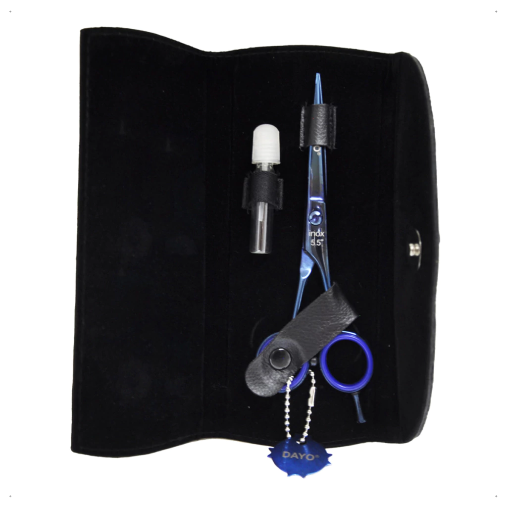 Tijera Profesional Microdentada Titanium 5.5" con estuche premium.