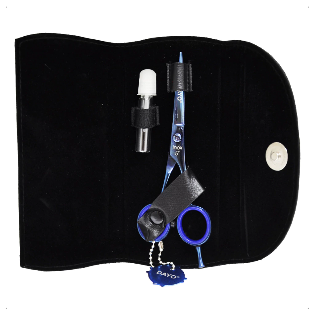Las Tijeras micro dentada titanium 5" de la marca Dayo son herramientas de alta calidad diseñadas para cortes precisos y suaves. Fabricadas con titanio, estas tijeras de 5 pulgadas cuentan con un diseño micro dentado que proporciona un corte preciso en cada uso. Vienen presentadas en un estuche de simil cuero y terciopelo, que no solo las protege, sino que también le da un toque elegante y profesional. Además, incluyen un frasco para agregar aceite y lubricar las tijeras, lo que ayuda a mantenerlas en óptimas condiciones de funcionamiento.