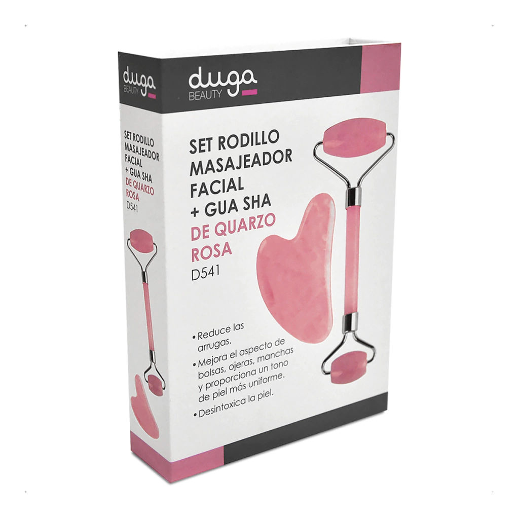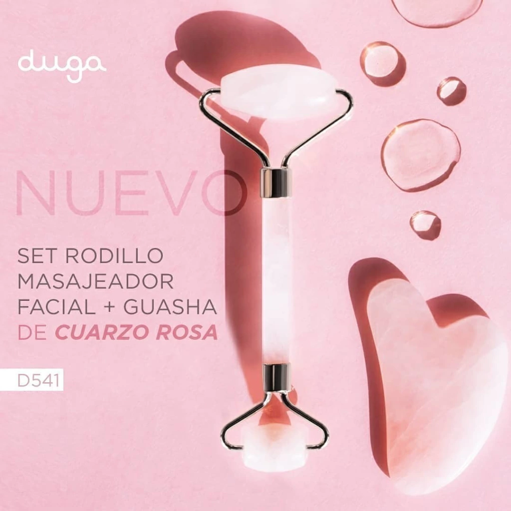 Duga - Set Rodillo Masajeador Facial + Gua Sha De Cuarzo D541