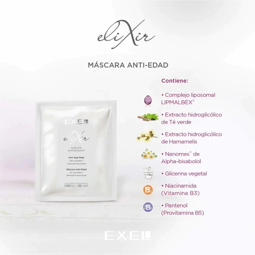 Exel Elixir - Máscara Facial Anti-Edad con Resveratrol Liposomado (26ml)
