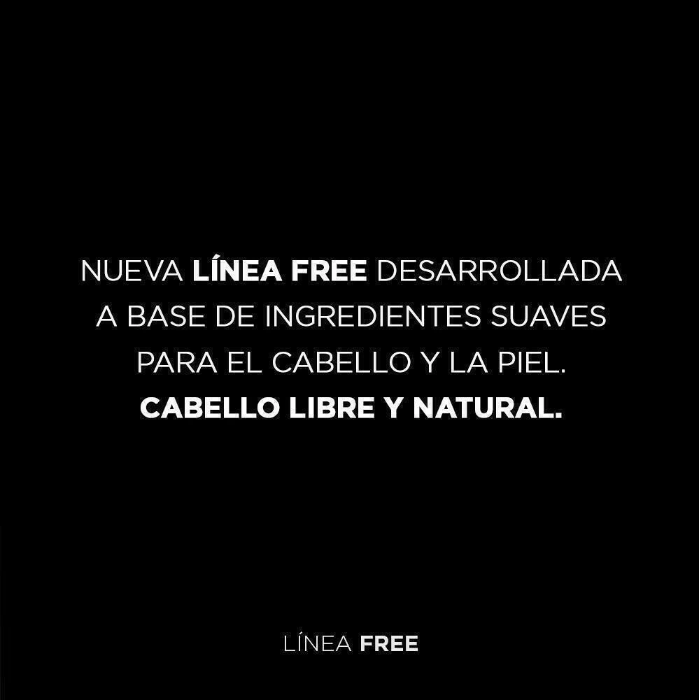 La LINEA FREE está desarrollada a base de ingredientes naturales que son más suaves para el cabello y la piel y aportan numerosas propiedades que pueden apreciarse desde la primera aplicación, en todo tipo de cabellos. Estos productos otorgan suavidad al cuero cabelludo, ayudan a retener el color en cabellos teñidos, aplacan el frizz y mejoran el volúmen. La línea Free es ideal para cabellos teñidos, secos, dañados y con rulos. Todos los productos de esta nueva Línea son libre de Sulfatos, Parabenos, Sal (Cloruro de Sodio), Siliconas y Colorantes.