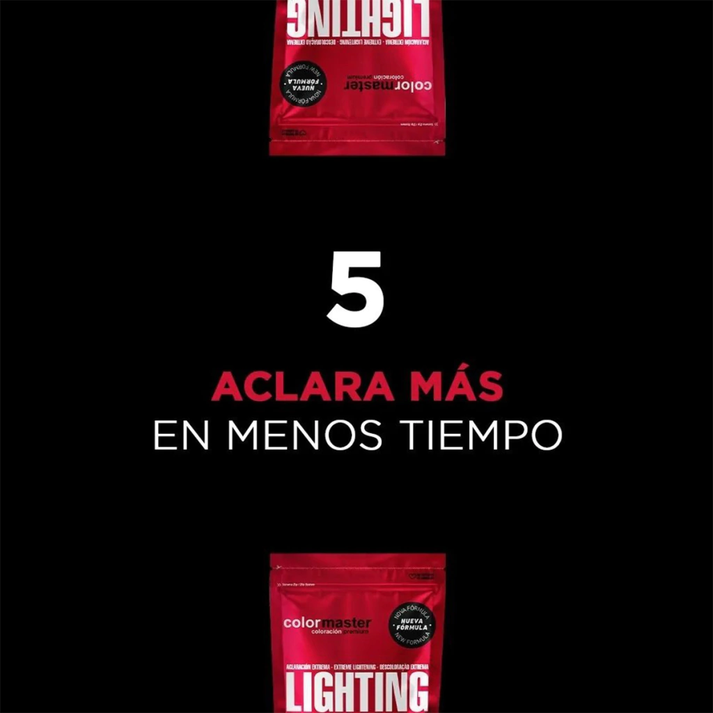 Colocar 25 g. de POLVO DECOLORANTE COLORMASTER en un recipiente no metálico. Agregar 50 ml. de REVELADOR EN CREMA COLORMASTER de 10, 20, 30 ó 40 vol. (según la intensidad de decoloración deseada). Mezclar hasta obtener una crema homogénea.