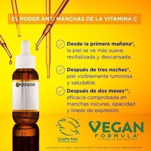 Descubrí el nuevo Sérum Noche de Garnier con 10% de Vitamina C pura para despertar con una piel más luminosa día a día. Sus activos ayudan a reducir las manchas durante la noche, cuando la piel es más receptiva de la regeneración. Observá la eficacia contra líneas de expresión, la opacidad y manchas oscuras a partir de la primera mañana.