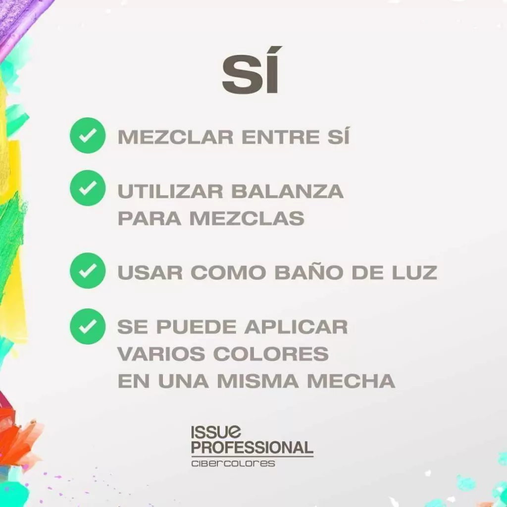 Issue Professional Cibercolores es una coloración semipermanente de uso directo, desarrollada con colorantes puros y vibrantes, que permiten lograr tonos fantasía intensos y luminosos. Su fórmula en crema ayuda a que la coloración sea homogénea, y a que el cabello quede acondicionado, dejándolo suave y brillante. Para conseguir tonos pasteles, podés mezclar cualquiera de nuestros colores puros con el Pastel Mix.