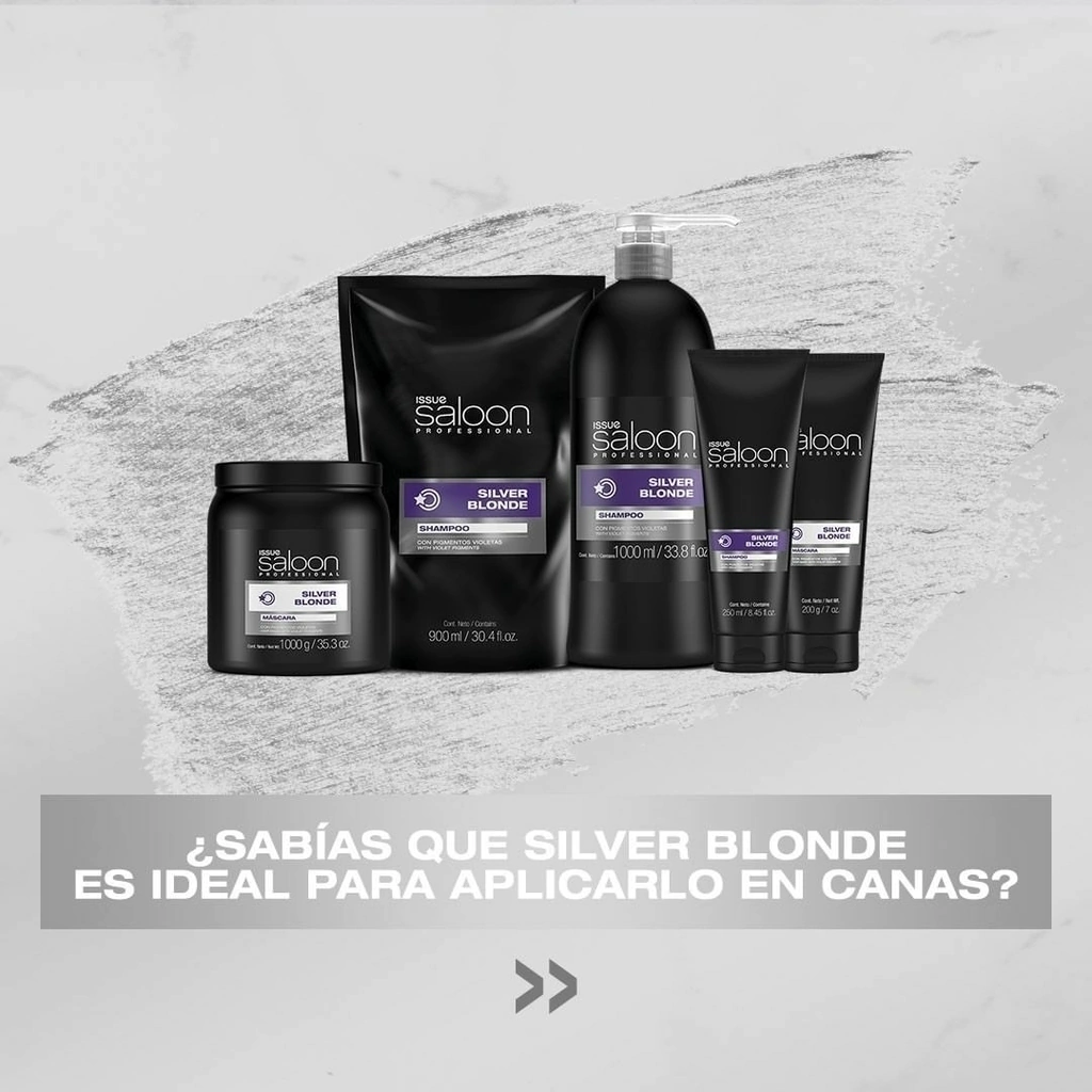 La línea de cuidado capilar Issue Saloon Professional Silver Blonde es ideal para cabellos rubios extra claros.