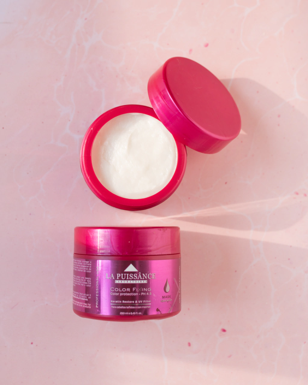 La Puissance tiene productos para la fijación del color como shampoo, acondicionador y máscara. Estos productos son ideales para conservar y fijar el color del cabello, mantenerlo sano y nutrido.