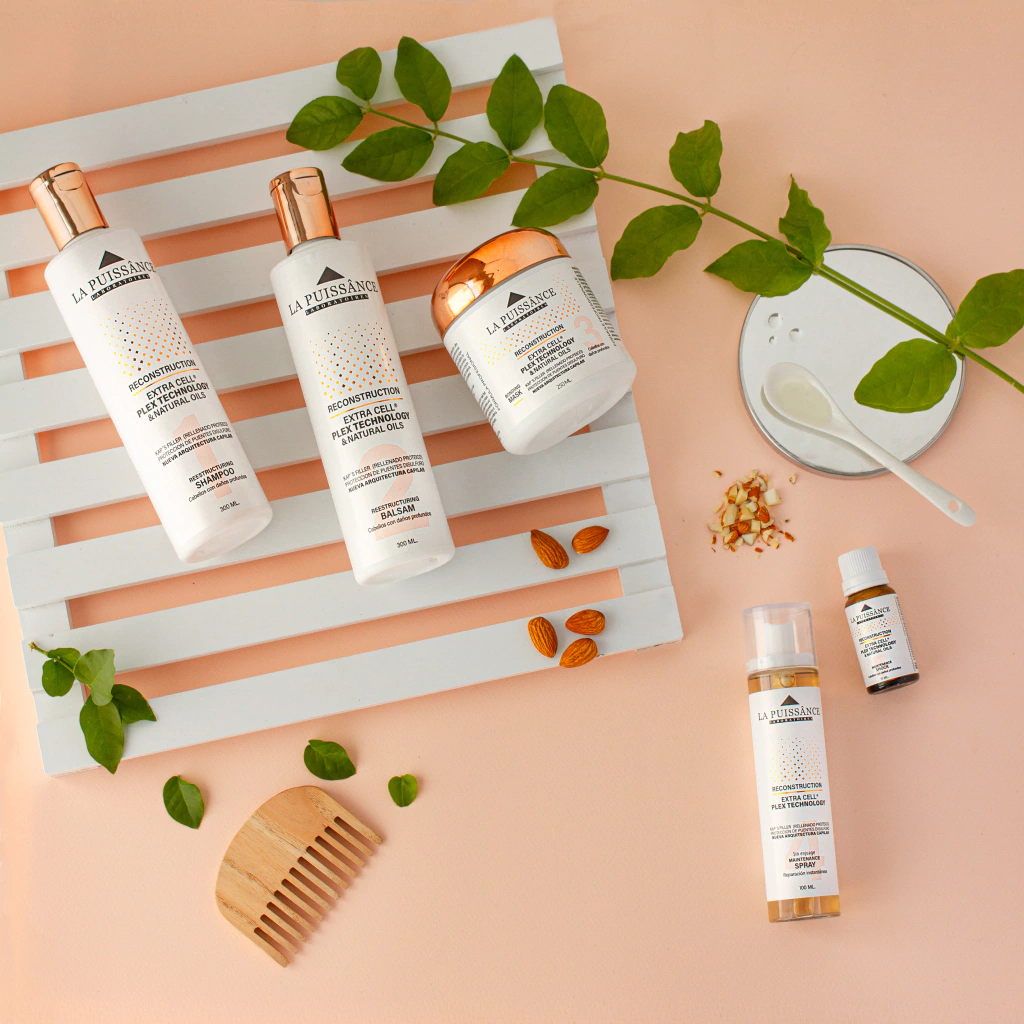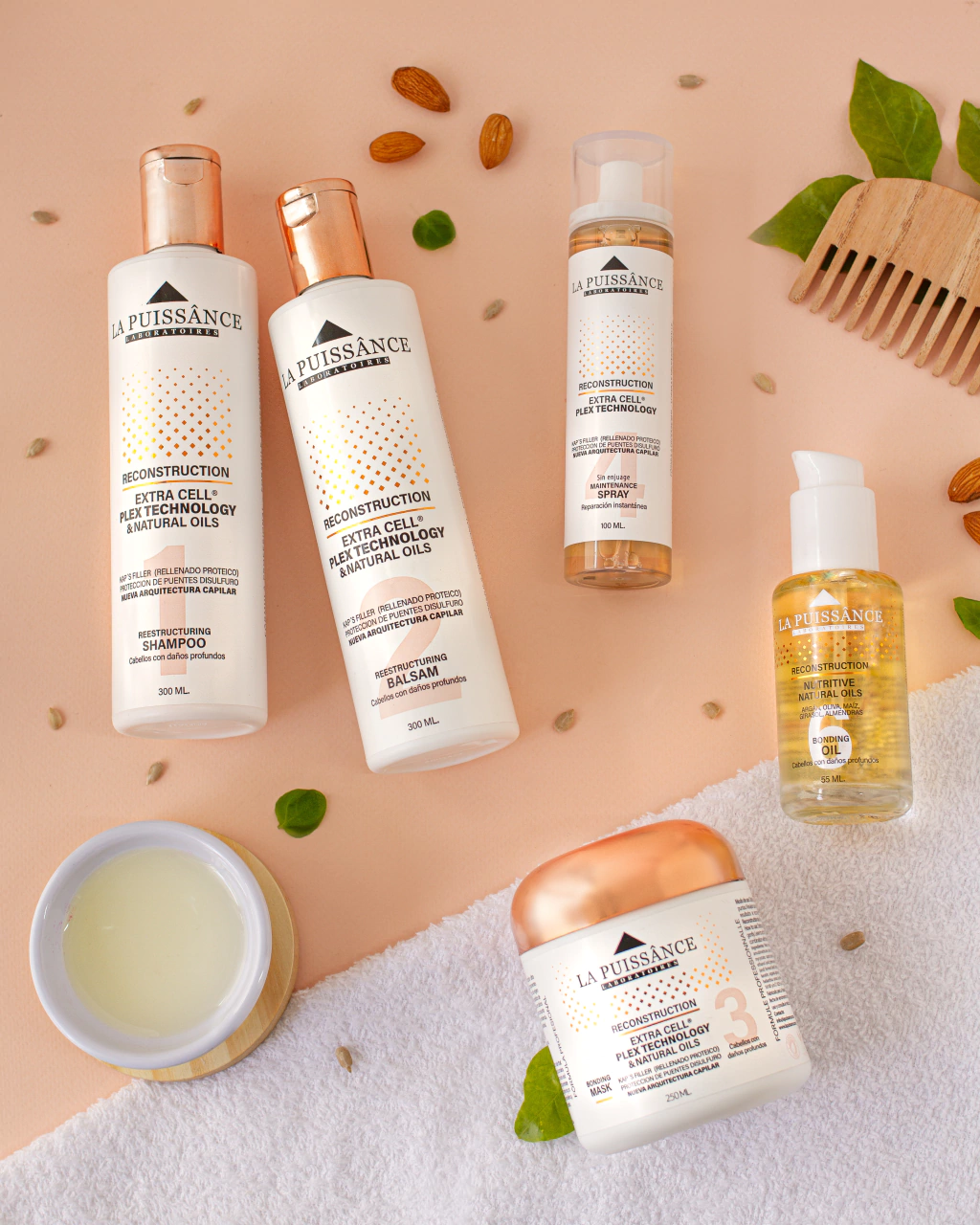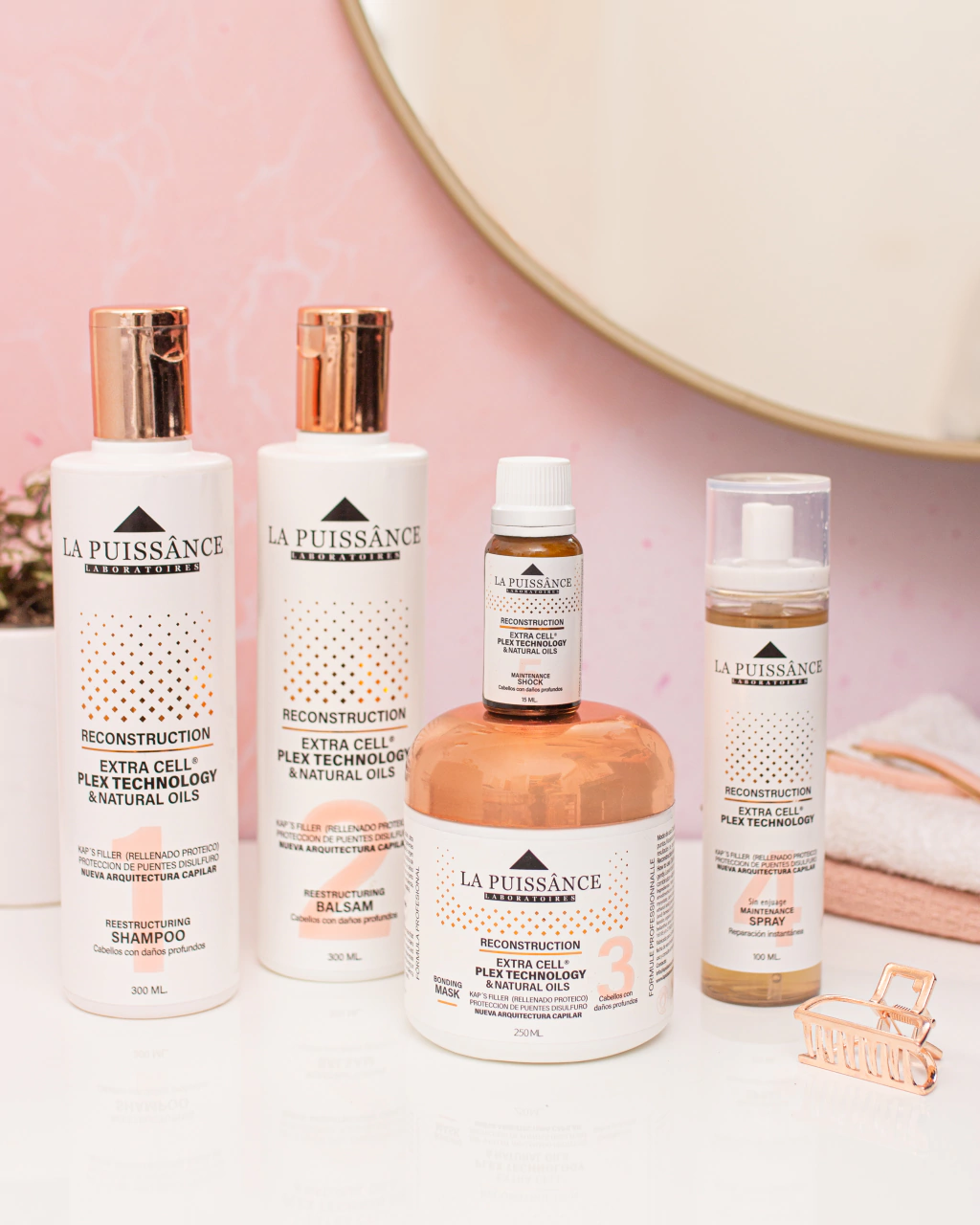 Es una línea compuesta por 6 pasos, la aplicación de todos los productos potencia la efectividad del tratamiento y acelera el resultado de la reconstrucción capilar.