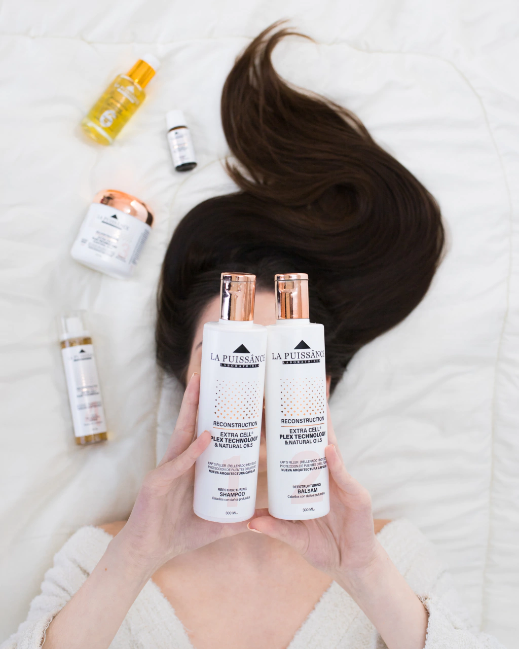 Es una línea compuesta por 6 pasos, la aplicación de todos los productos potencia la efectividad del tratamiento y acelera el resultado de la reconstrucción capilar.