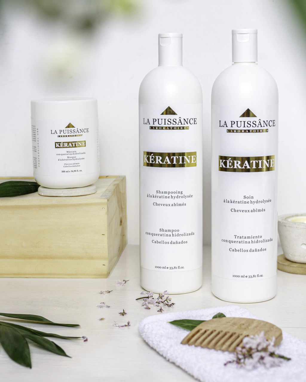 La Puissance tiene su línea Keratin pensada para suaviza las hebras opacas, rebeldes y erosionadas químicamente, aportando hidratación intensa, sedosidad y brillo desde la raíz hasta la punta. Ideal para tu salón de belleza o para usar en el hogar.