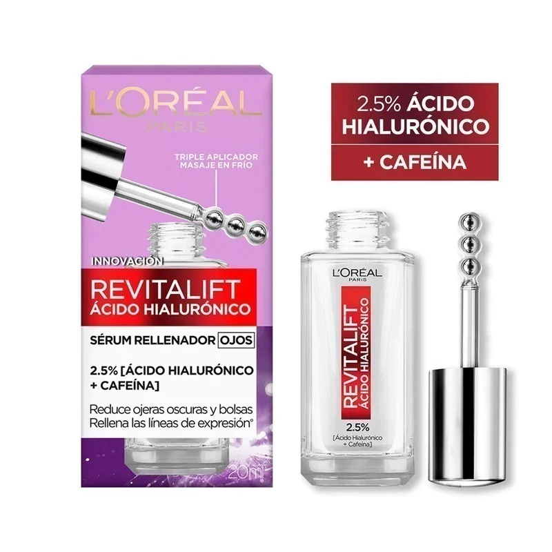 Serum de ojos formulado con la concentración más alta de L’Oréal Paris. Revitaliza los ojos y reduce la apariencia de las ojeras inmediatamente, mientras hidrata y rellena las arrugas en el área de los ojos con el tiempo. En 2 semanas los ojos lucen 5 años más jóvenes.
