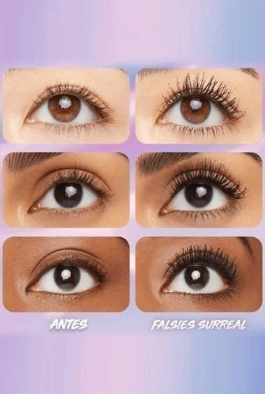 ¿HASTA DÓNDE PUEDEN LLEGARTUS PESTAÑAS NATURALES? Consigue un impacto surreal con la nueva máscara de pestañas The Falsies Surreal Extensions. Su fórmula con fibras híbridas y su cepillo en hélice, con cerdas que extienden cada pestaña, te brindarán hasta 10 veces más volumen y un 36% más de longitud. ¡Efecto extensiones de pestañas en casa!