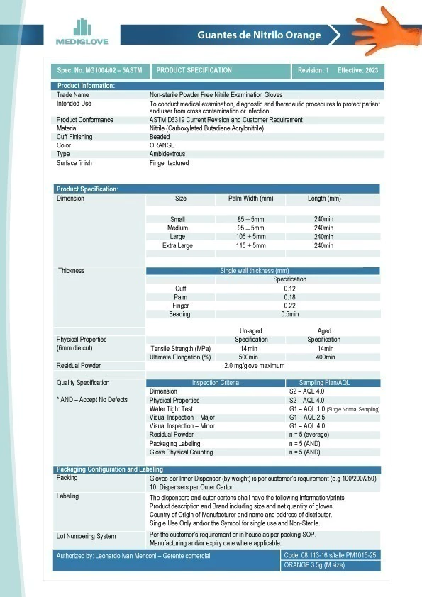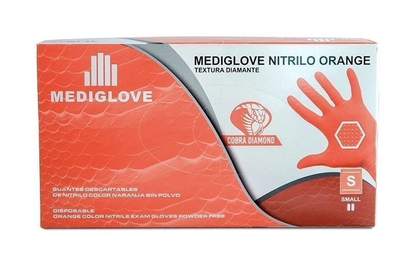 Mediglove - Guantes de Nitrilo Orange Textura Diamante (50u)
