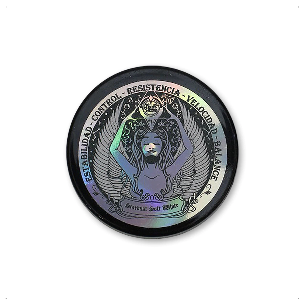 El brillo de los polimeros de Nail Show Stardust se ven desde su envase.