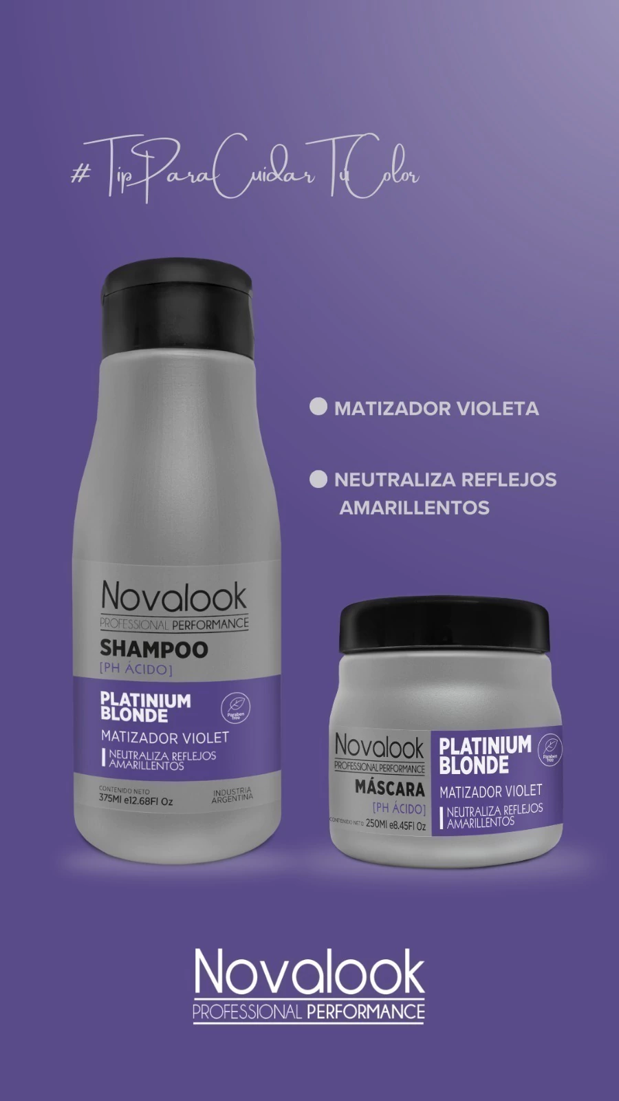 Novalook - Kit Platinum Blonde Shampoo (375ml) + Máscara (250ml) Matizador Violet