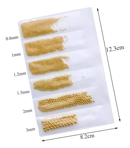 Adorno de uñas profesional con microperlas plateadas en diferentes tamaños, ideal para decorar y dar un toque elegante a tus diseños de nail art.