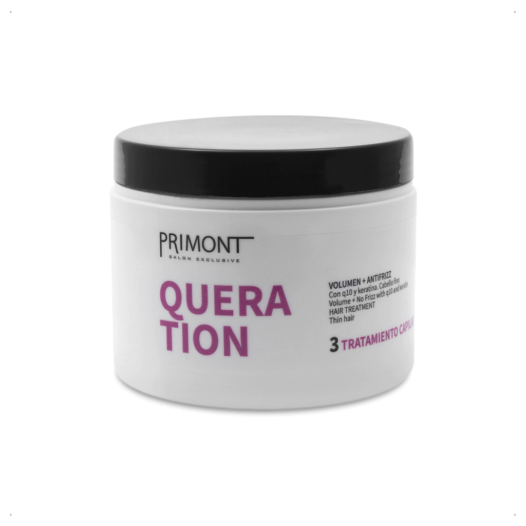 Cosmética Primont desarrolló QUERATION para devolver la queratina perdida, logrando una fibra más gruesa, fuerte y reparada. Su fórmula bifásica combina los componentes justos para anclar la queratina al cabello, permitiendo así reparar y engrosar la fibra capilar para eliminar frizz. Al fortalecer la estructura capilar, consigue sumar brillo, volumen y peinabilidad al cabello, además lo deja un 80% más fuerte y disciplinado.