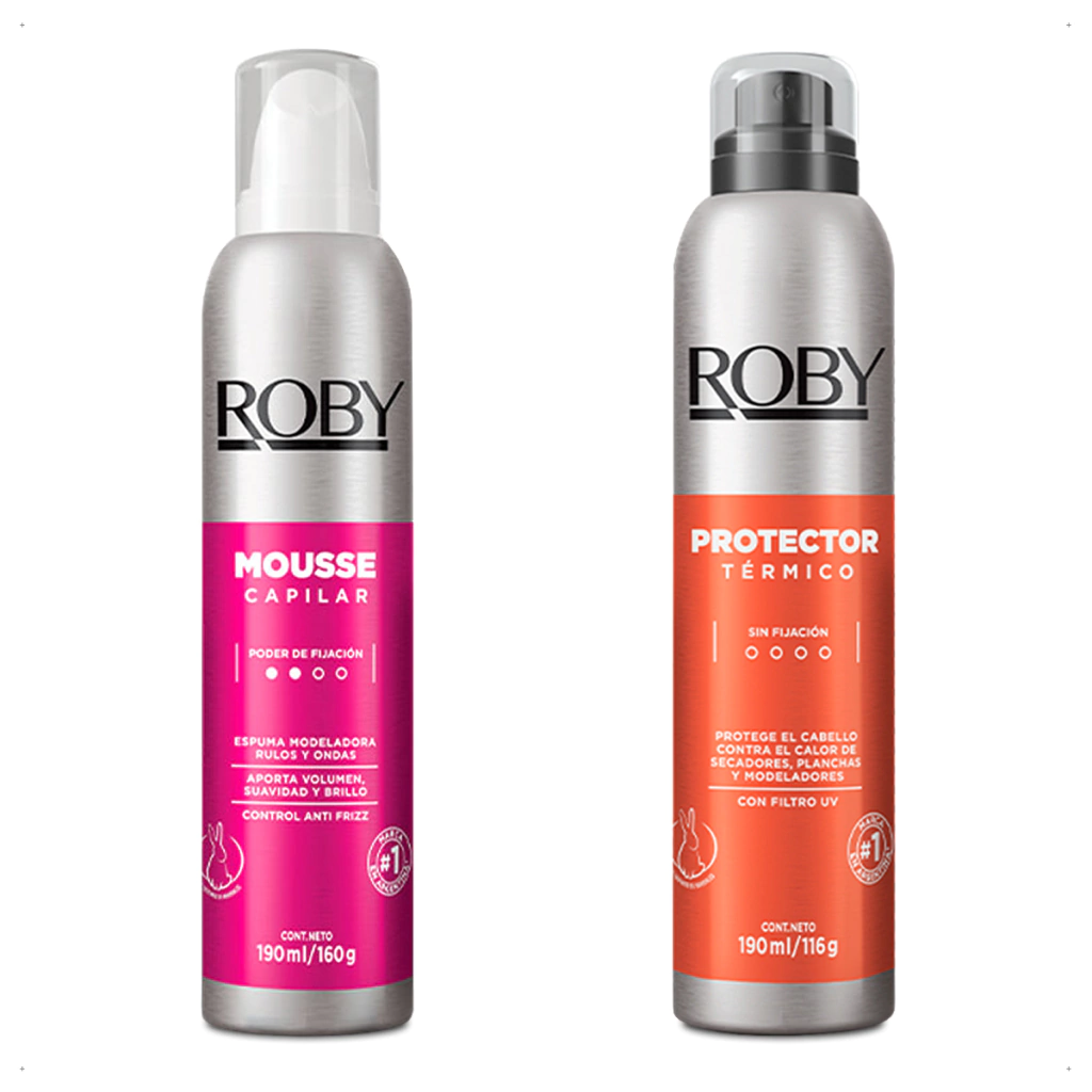 • 1 Mousse Roby (190ml): Poder de fijación. Aporta volúmen, suavidad y brillo.