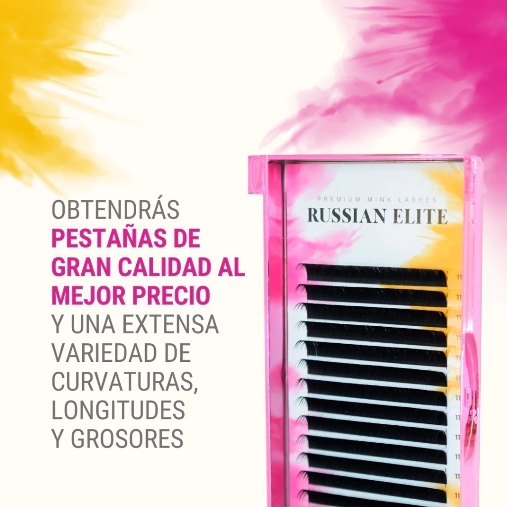 Las fibras de RUSSIAN ELITE son ideales para un set de alta calidad a un precio único, dejando una cobertura extra suave y con mayor fijación para un resultado duradero.Cuentan con una amplia variedad de curvas y grosores para las diferentes técnicas además de ser muy suaves, ligeras, flexibles imitando a la perfección la pestaña natural.