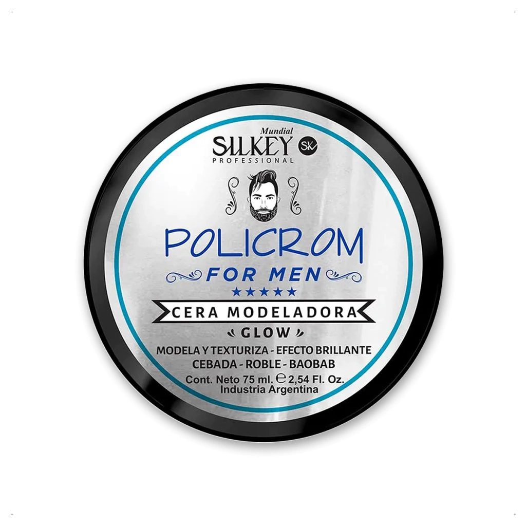 • 1 Policrom Cera Modeladora Glow (75ml): Modela y Texturiza. Efecto Brillante. La Cera modeladora “Glow”, modela y texturiza el corte o peinado con efecto brillante. Puede ser aplicada sobre el cabello seco o húmedo Sus componentes activos basados en Cebada + Roble + Baobab ofrecen altas concentraciones de nutrientes, vitaminas y minerales que aportan grandes beneficios al cuidado y la belleza del cabello y la piel, cumpliendo acciones antioxidantes, que estimulan la regeneración celular aportando elasticidad, astringencia y sensación refrescante.
