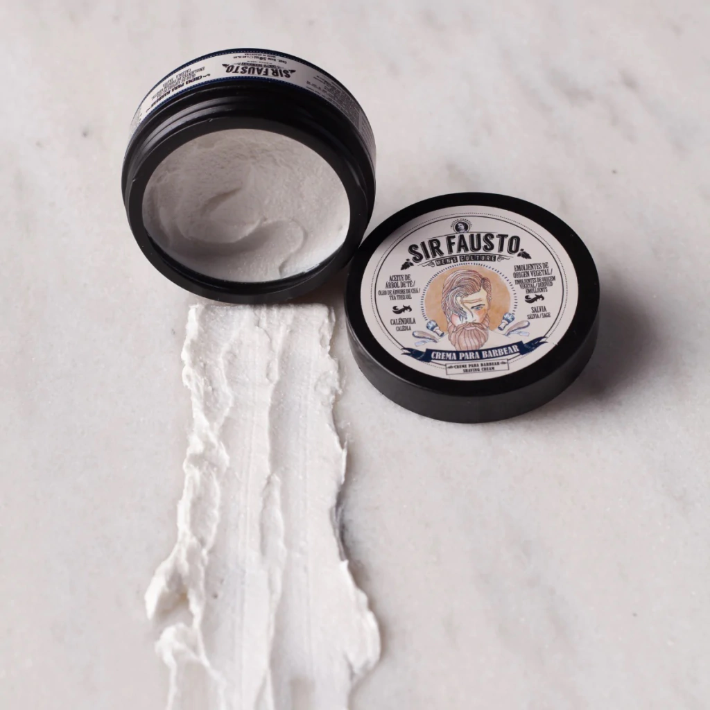 En primer lugar, asegúrate de que el área a afeitar esté limpia. Basándonos en la tradición, sumerge la brocha en tu lavado de manos con agua caliente. Al remojar las cerdas de la brocha, éstas toman agua, que es importante para la espuma. Moja la barba. Toma una agradable y larga ducha, o bien, puedes empapar una toalla en agua caliente y aplicarla sobre la cara. Si utilizas una toalla, moja la cara dos o tres veces. Saturarla con agua caliente hace que tu barba esté suave y flexible, resultando más fácil de cortar. Carga la brocha con la suficiente Crema para Barbear Sir Fausto para saturar las cerdas y comienza a batir la crema de barbear hasta crear una espuma ligeramente más aireada. Añade agua si es necesario. Aplícala sobre el rostro utilizando la brocha en pequeños círculos. No tengas miedo de pasarte. El objetivo es lubricar completamente la piel, la barba y los poros, lo que hará que tu afeitado sea mucho más cómodo. Te recomendamos después del afeitado aplicar after shave sir fausto. Para ello la piel debe estar seca y limpia, aplicar cantidad necesaria en la palma de tu mano y procede a distribuir el producto sobre la zona afeitada, masajear suavemente para que entre en vigor el efecto antiinflamatoria, cicatrizante y refrescante, gracias a su efecto mentolado. Resultado: Después del proceso de afeitado obtendrás una piel suave, hidratada y restaurada. Con un sutil aroma fresco y muy herbático.