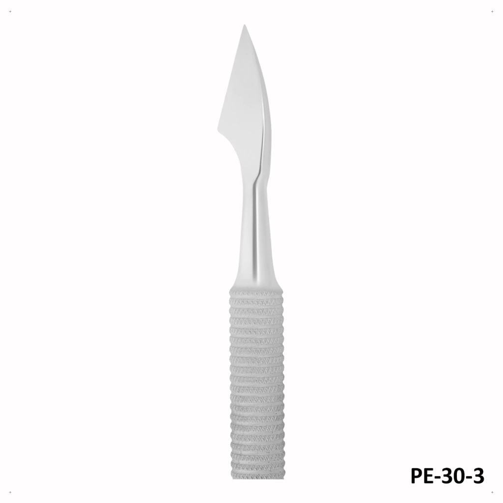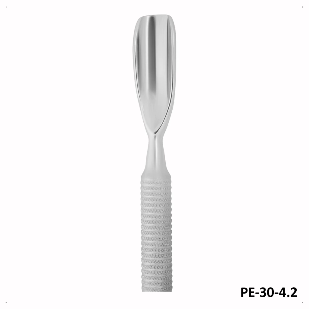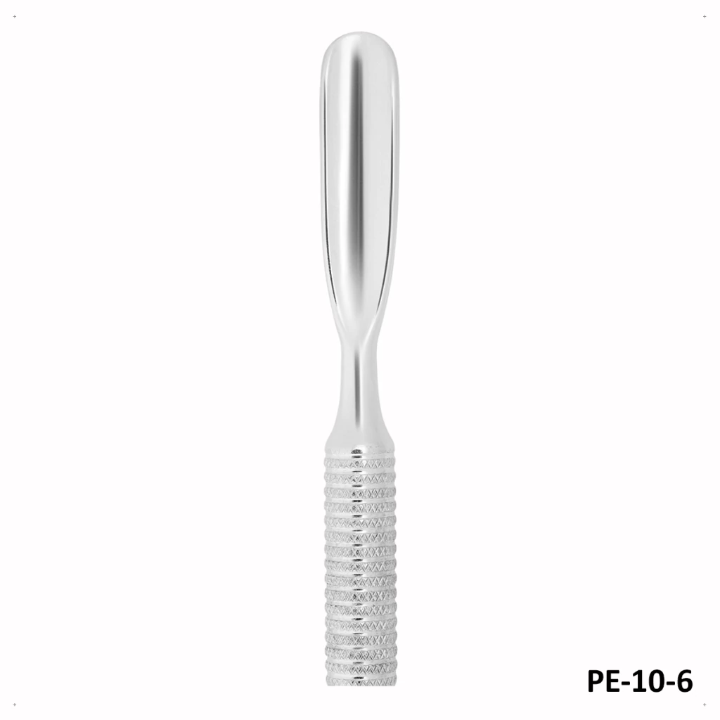En la serie EXPERT está representada una multitud de empujadores tanto para la manicura como para la pedicura. Todos ellos tienen el mango cilíndrico cómodo con grabado especial que evita el deslizamiento de la herramienta en la mano del máster durante el trabajo. La herramienta no traumatiza la placa ungueal ya que está perfectamente afilada y el máster no necesita presionar mucho a la uña para tratar con eficacia la cutícula. Los empujadores EXPERT tienen el pulido de calidad tanto de la mango como de la parte de trabajo que los hace más resistentes a la corrosión.