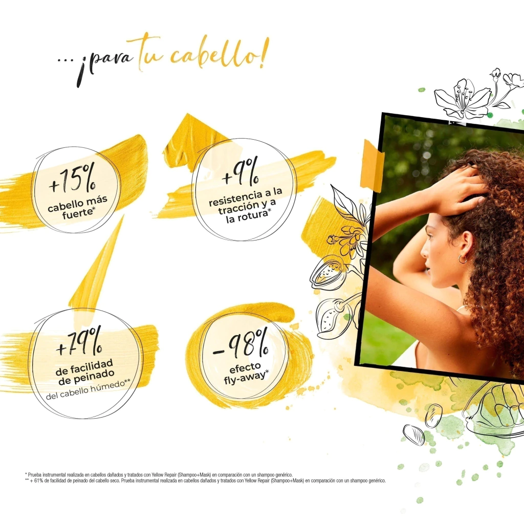 Con Yellow Repair vas a tener un cabello 86% más fuerte y hasta 3 veces más resistente gracias a su fórmula cuidadosamente elaborada para reparar, proteger y reconstruir de raíz a puntas.